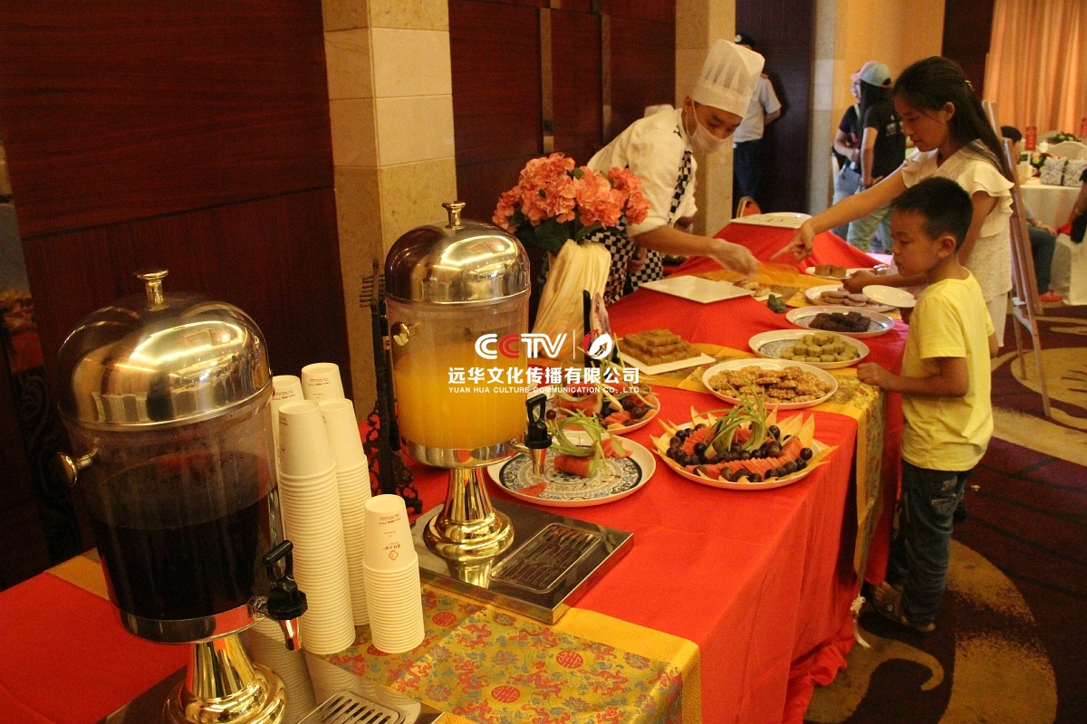 會(huì)場(chǎng)內(nèi)提供精致的中式糕點(diǎn)、水果冷餐供客戶取用