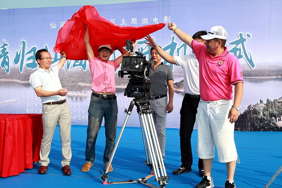 開機(jī)儀式上,仙海區(qū)黨工委書記代宏、導(dǎo)演胡京、四川微電影協(xié)會(huì)會(huì)長(zhǎng)肖建兵、男主角閔天浩先后致辭,共同祝賀正式開機(jī)。