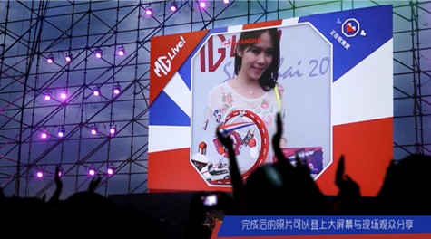 照片會同時出現在現場以及其他地區的大屏幕上,觀眾輸入手機號后還會收到自己照片的鏈接頁面,在手機的頁面可以下載照片,以及分享照片到自己的社交網絡。以此來表達對于MG品牌的熱愛。